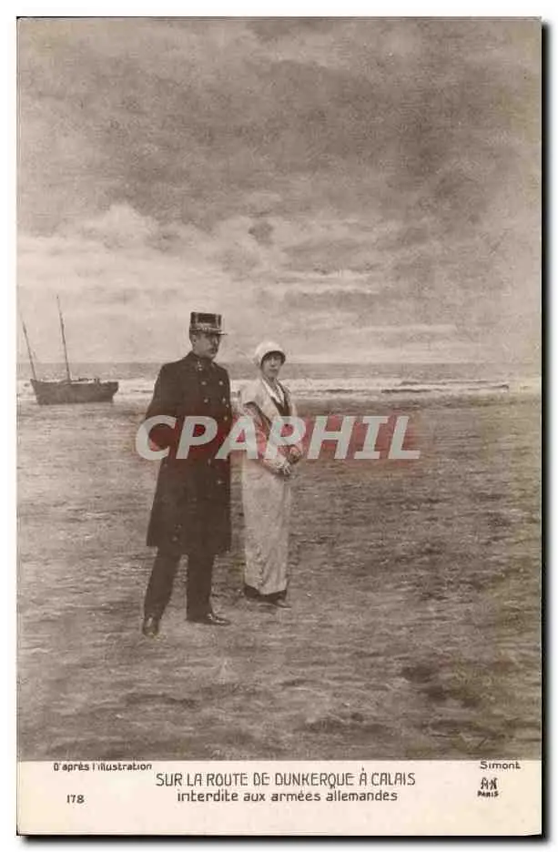 Cartes postales Militaria Sur la route de Dunkerque a Calais Albert 1er