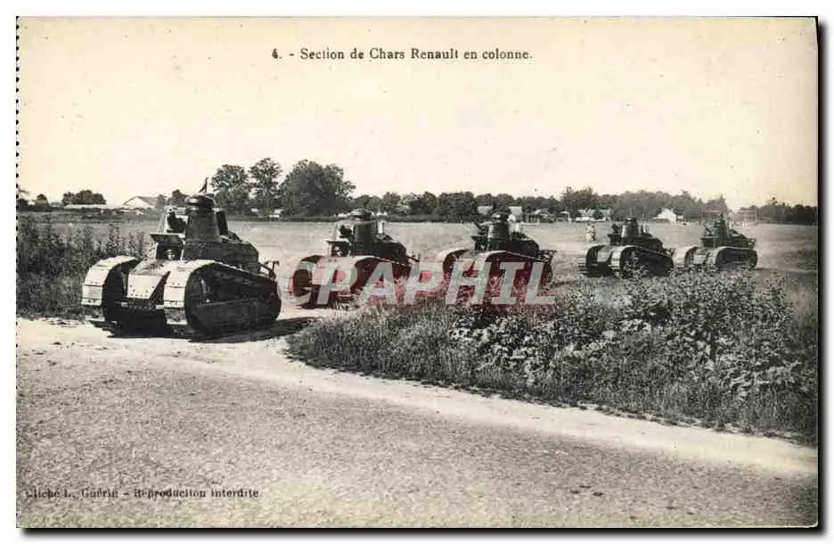 Cartes postales Militaria Tank Section de chars Renault en colonne
