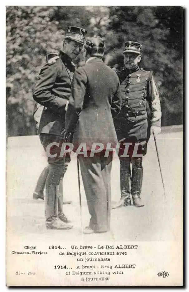 Cartes postales Militaria Un brave Le roi Albert de Belgique conversant avec un journaliste
