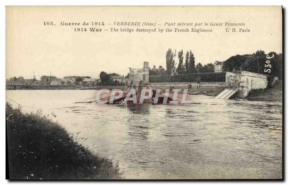 Cartes postales Militaria Verberie Pont detruit par le Genie Francais