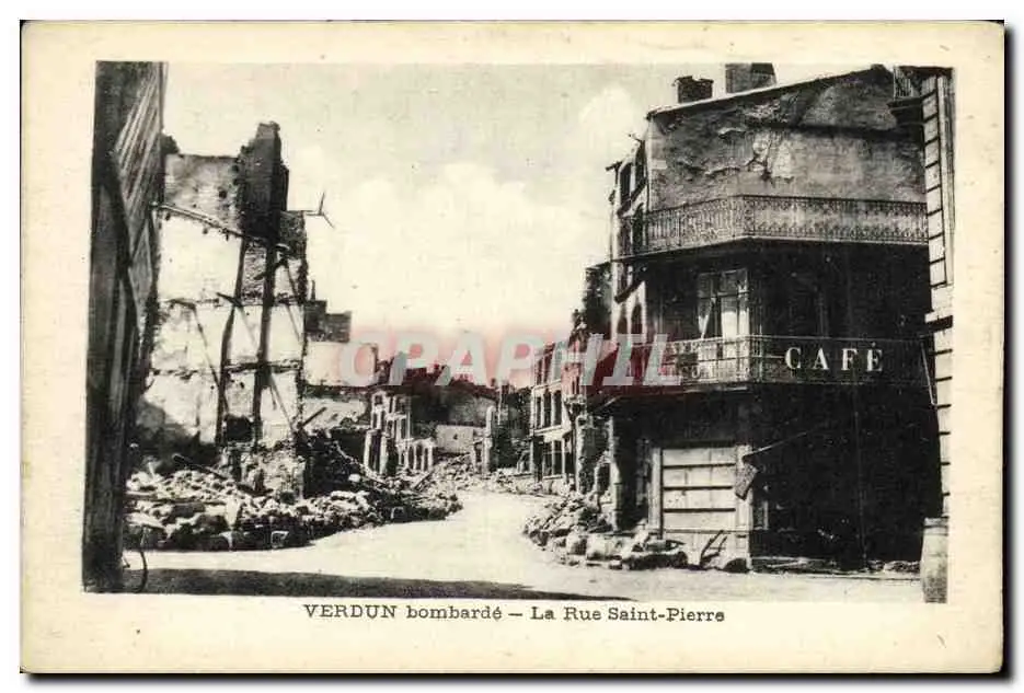 Cartes postales Militaria Verdun Bombarde la Rue Saint Pierre Cafe