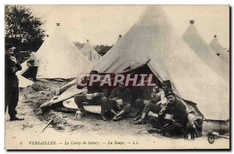 Cartes postales Militaria Versailles Le camp de Satory La soupe