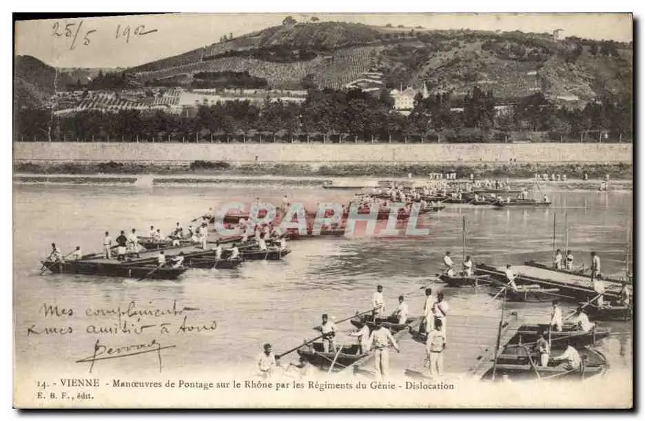 Cartes postales Militaria Vienne Manoeuvres de pontage sur le Rhone par les regiments du Genie Dislocation