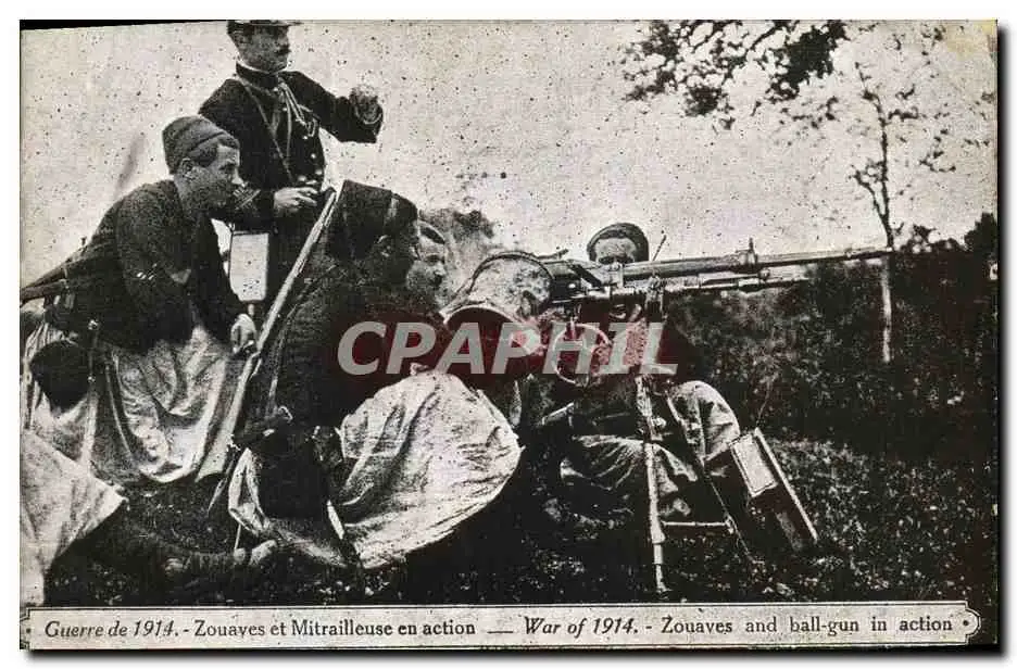 Cartes postales Militaria Zouaves et mitrailleuses en action