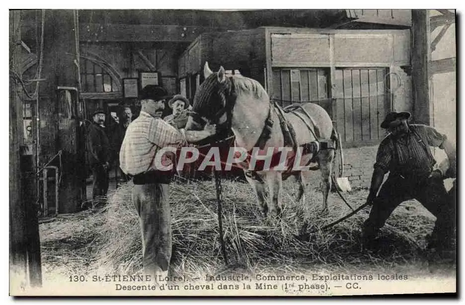 Cartes postales Mine Mines St Etienne Descente d&#39un cheval dans la mine TOP