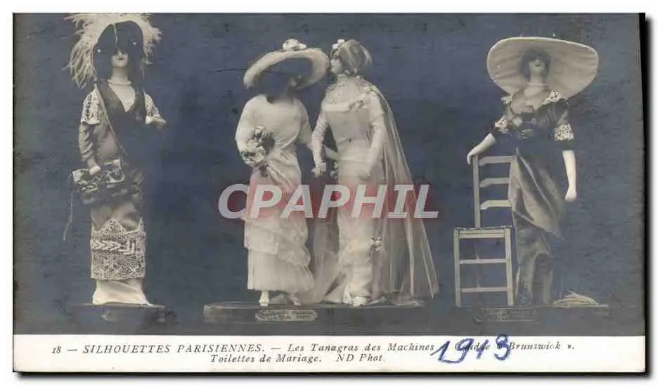 Cartes postales Mode Silhouettes parisiennes Les Tanagras des machines a coudre de Brunswick Toilettes de mariag