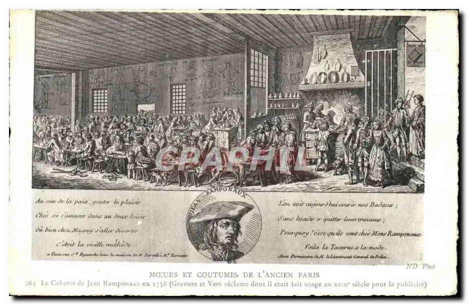 Cartes postales Moeurs et coutumes de l&#39ancien Paris Le cabaret de Jean Ramponaux 1758
