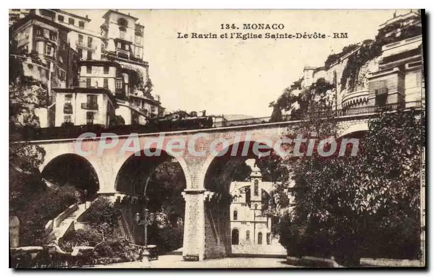 Cartes postales Monaco Le Ravin et l'Eglise Sainte Devote