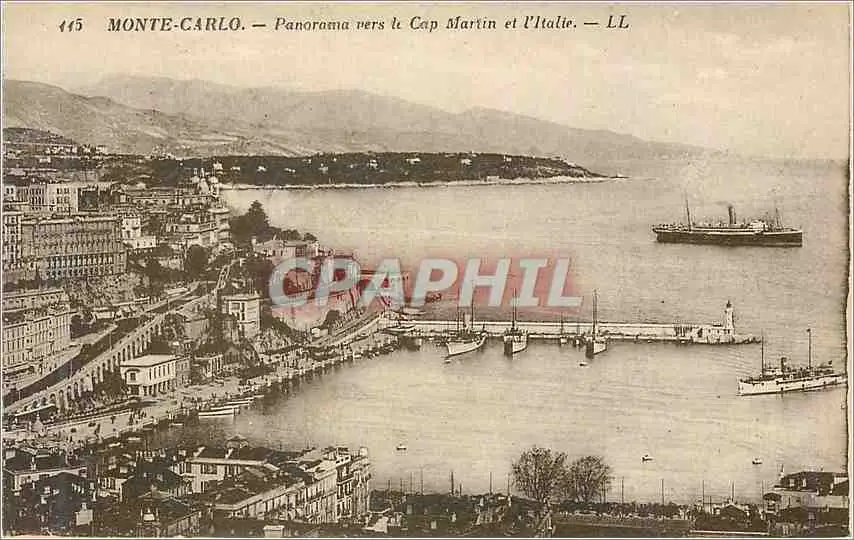 Cartes postales Monte Carlo Panorama vers le Cap Martin et l'Italie Bateaux