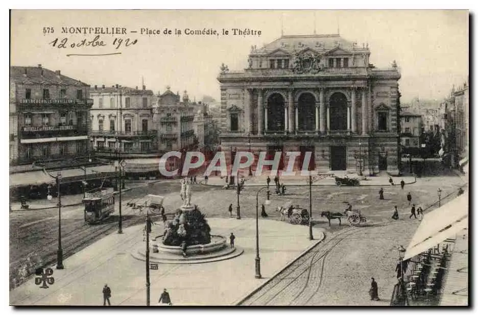 Cartes postales Montpellier Place de la comedie Le Theatre Tramway