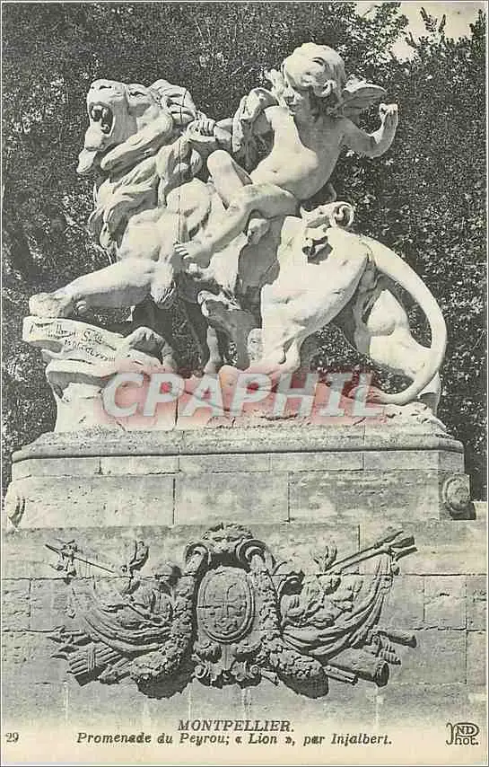 Cartes postales Montpellier Promenade du Peyrou Lion par Injalbert Lion Ange