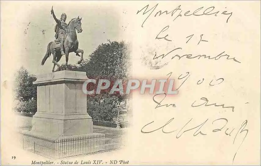 Cartes postales Montpellier Statue de Louis XIV (carte 1900)