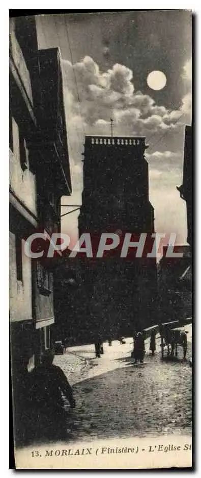 Cartes postales Morlaix L&#39Eglise St Mathieu au clair de lune
