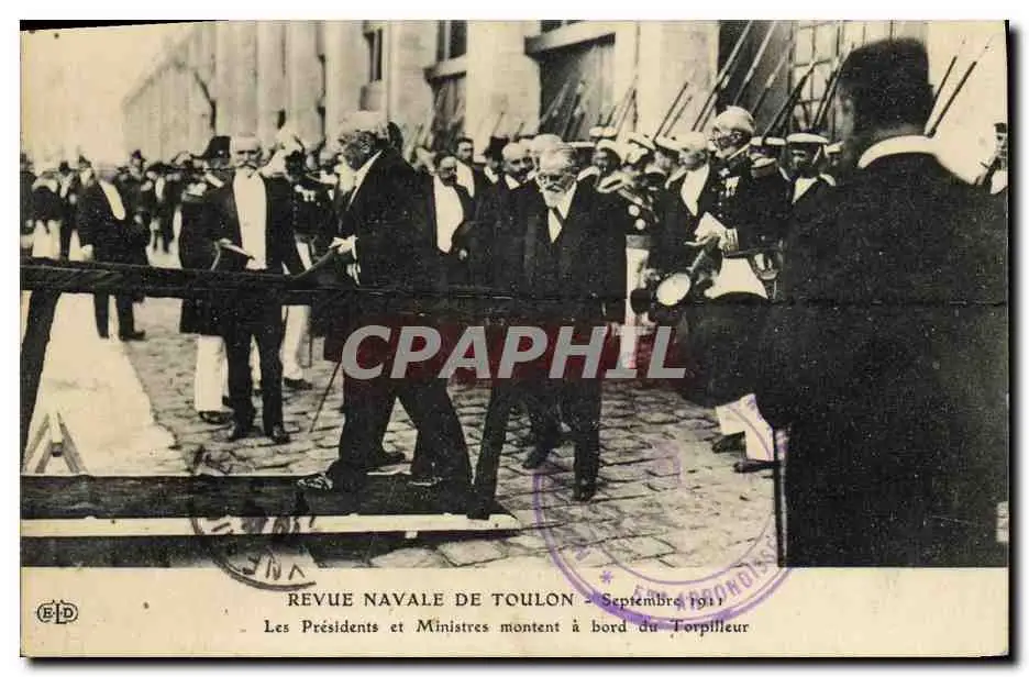 Cartes postales Mort Revue navale de Toulon Les Presidents et ministres montent a bord du torpilleur