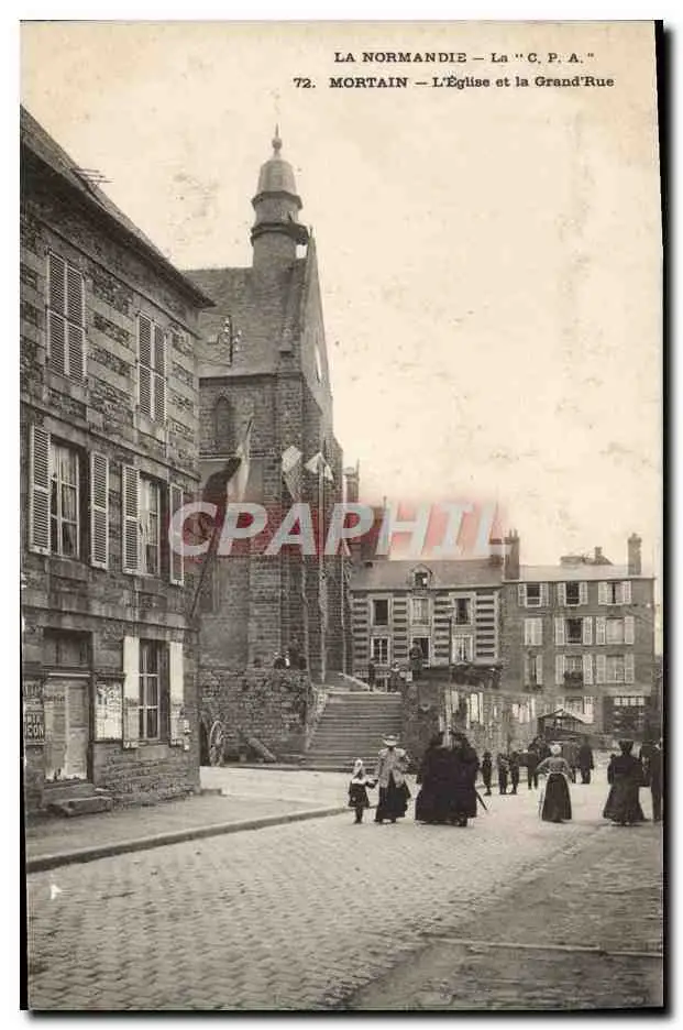 Cartes postales Mortain L'Eglise et la Grand Rue