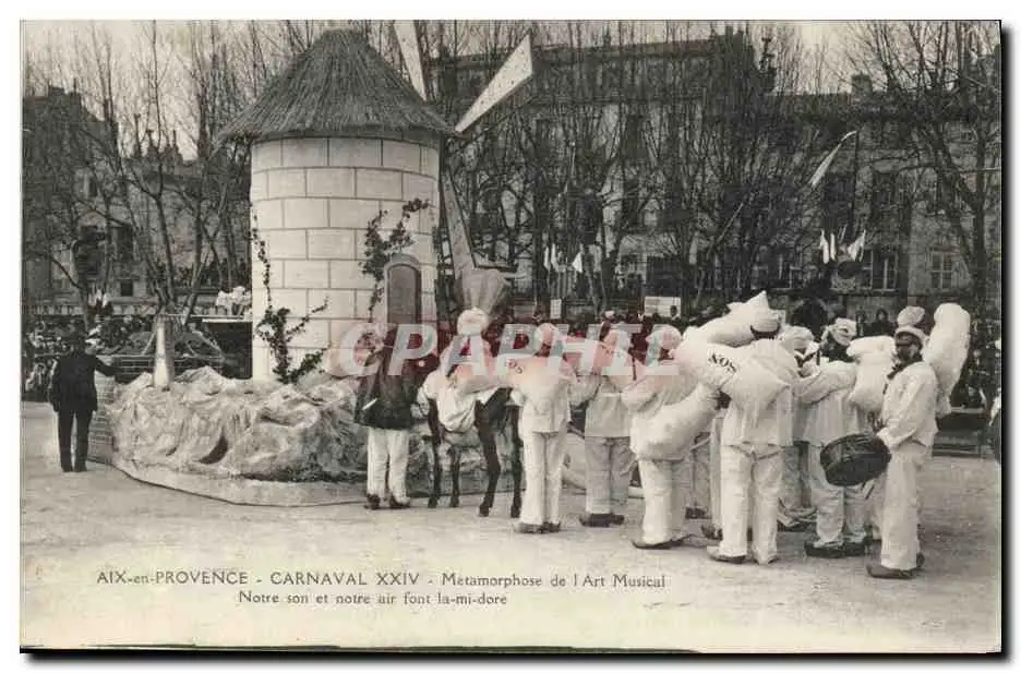 Cartes postales Moulin a vent Aix en Provence Carnaval XXIV Metamorphose de l'art musical Ane mule