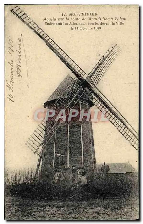 Cartes postales Moulin a vent Montdidier Moulin sur la route de Montdidier a Tricot