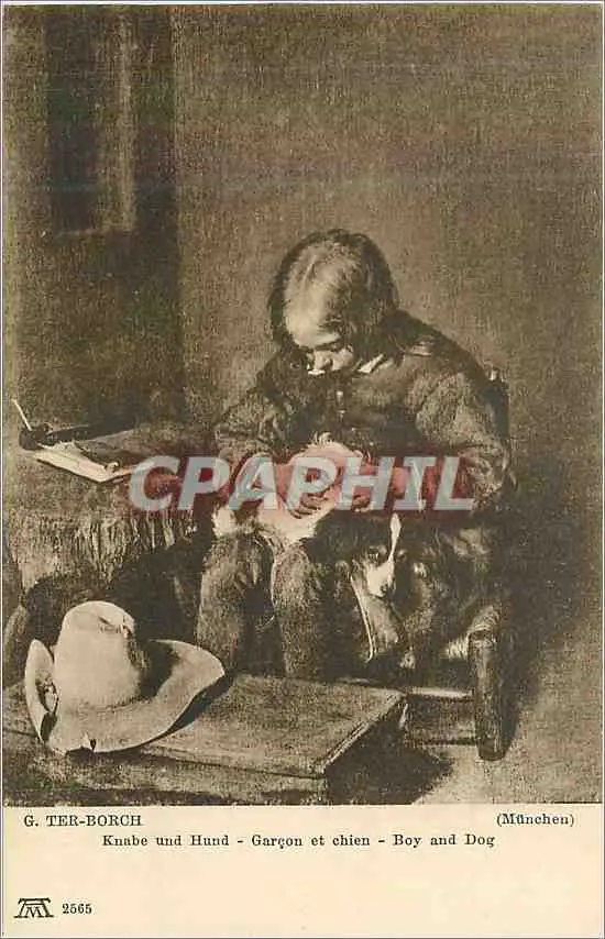 Cartes postales Munchen Ter Borch Garcon et Chien