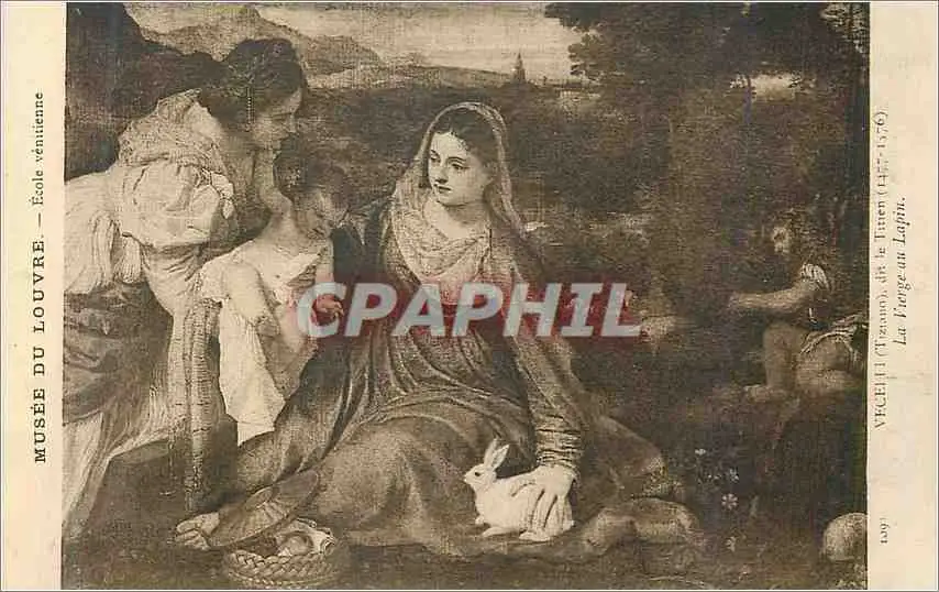 Cartes postales Musee du Louvre Ecole Venitienne Vecelli (Tiziano) dit le Titien (1477 1576) La Vierge au Lapin