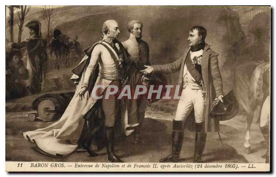 Cartes postales Napoleon 1er Baron Gros Entrevue de Napoleon et de Francois II apres Austerlitz