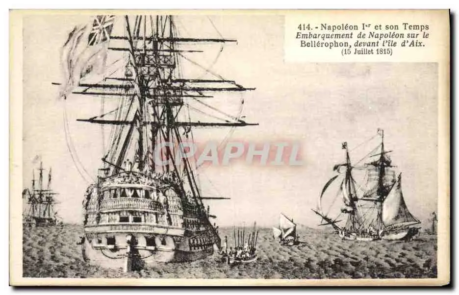Cartes postales Napoleon 1er Embarquement de Napoleon sur le Bellerophon devant l'Ile d'Aix 15 juillet 181