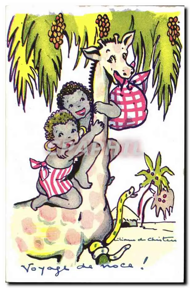 Cartes postales Negre Enfant Noir Girafe Voyage de noce Serpent