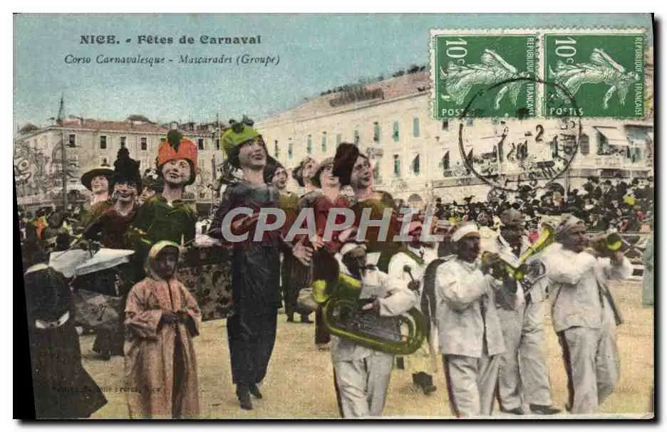 Cartes postales Nice Fetes de Carnaval Corso carnavalesque Mascarades Groupe Trompette Cuivres Tuba Cor