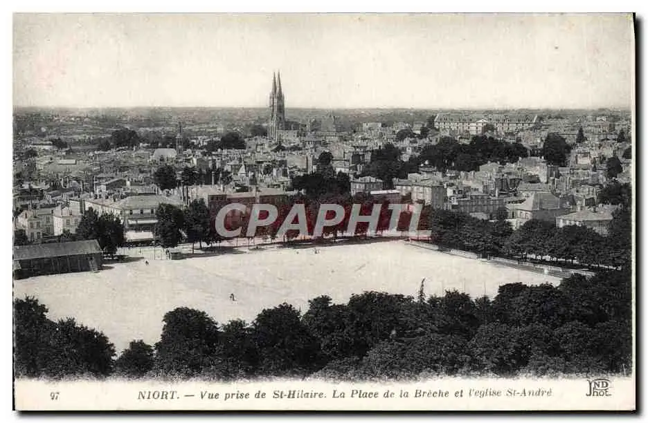 Cartes postales Niort Vue Prise de St Hilaire La Place de la Breche et l'eglise St Andre