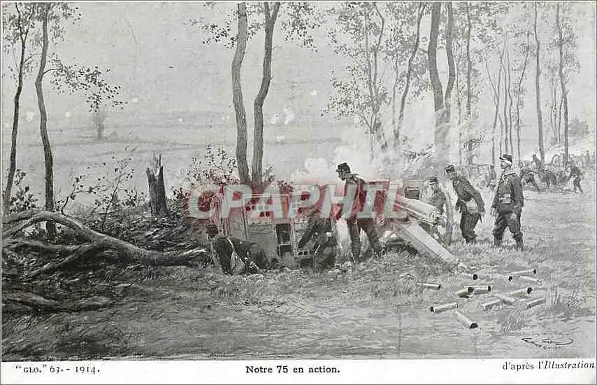 Cartes postales Notre 75 en Action d'Apres l'Illustration Militaria