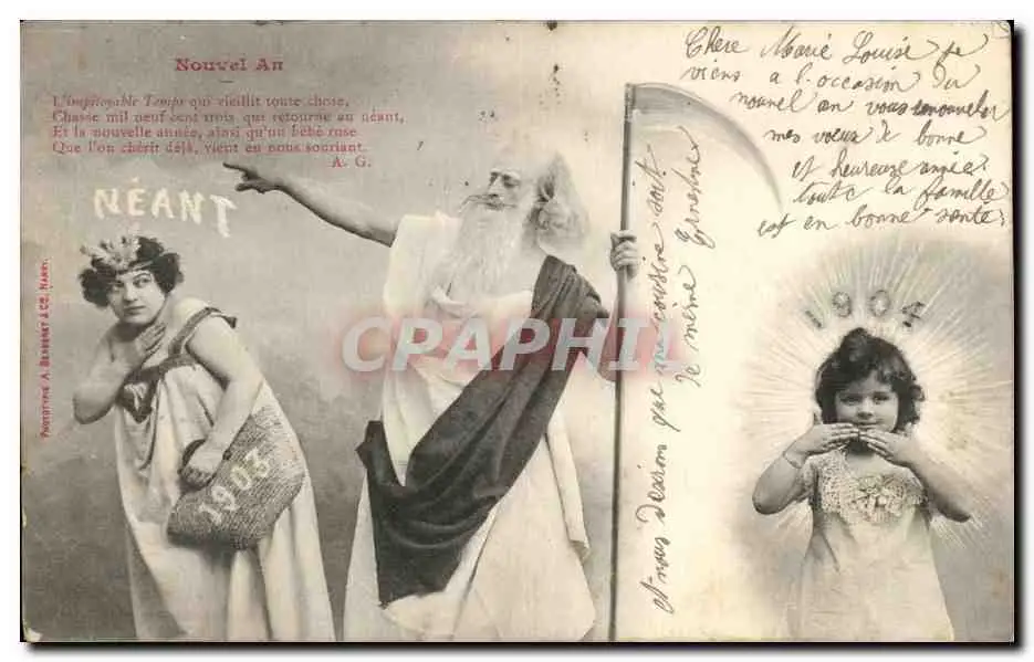 Cartes postales Nouvel An L'impitoyable Temps qui vieillit toute chose FAux 1903 1904