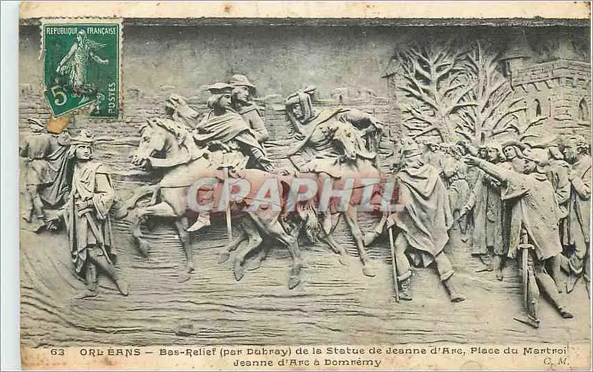 Cartes postales Orleans Bas Relief (par Dubray) da la Statue de Jeanne d'Arc Place du Martroi