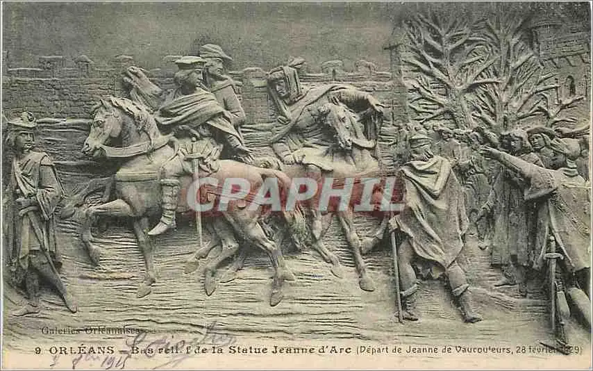 Cartes postales Orleans Bas Reliefs de la Statue Jeanne d'Arc (Depart de Jeanne de Vaucouleurs)