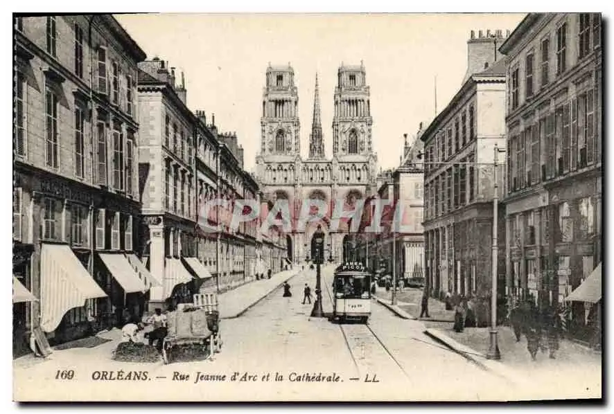 Cartes postales Orleans Rue Jeanne D'Arc et la Cathedrale