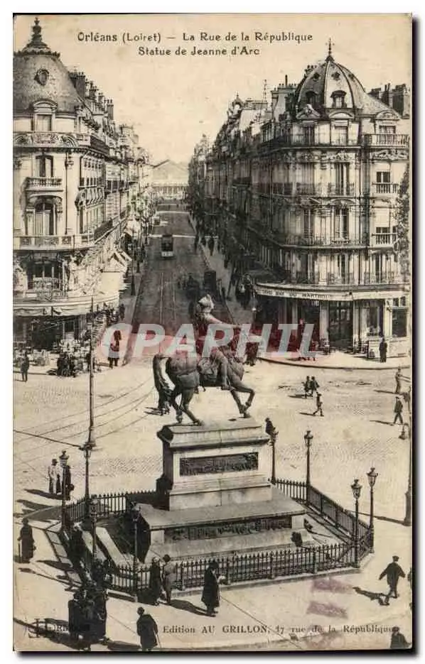 Cartes postales Orleans la rue de la Republique Statue de Jeanne d'arc