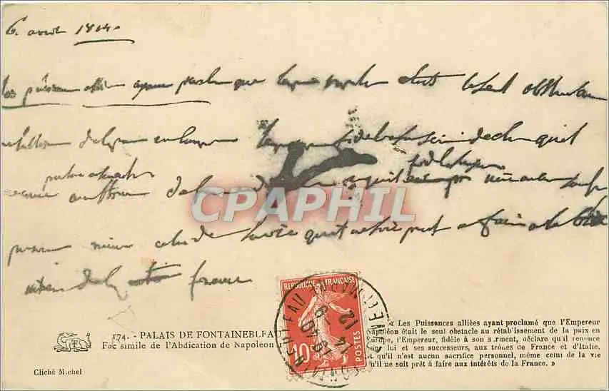 Cartes postales PALAIS DE FONTAINEBLEAU Fac simile de l'abdication de Napoleon 1er