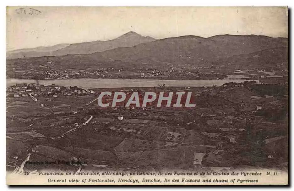 Cartes postales Panorama De Fontarabie D'Hendaye De Behobie Ile Des Faisans et de la chaine des Pyrenees