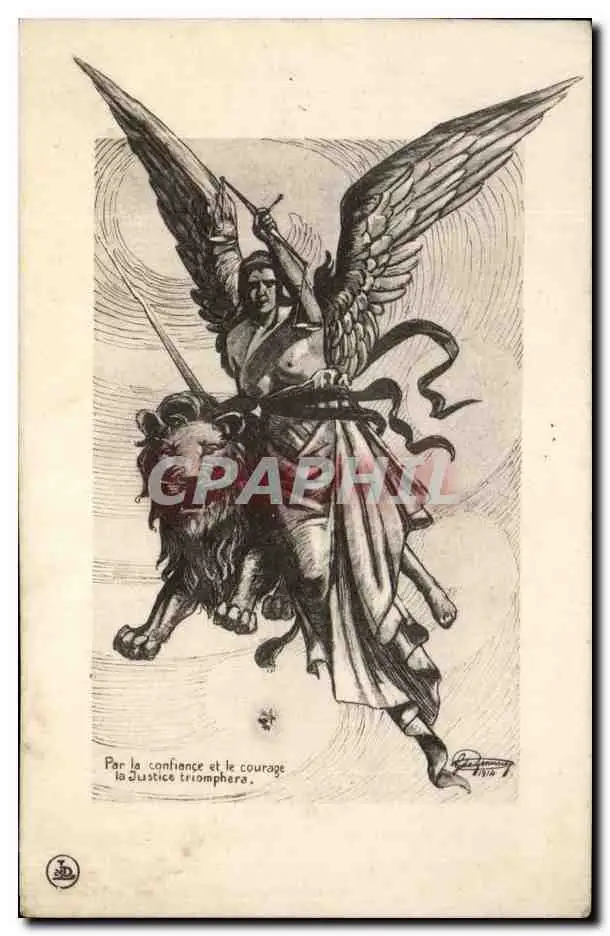 Cartes postales Par la Confiance et le Courage la Justice Trimphera Lion