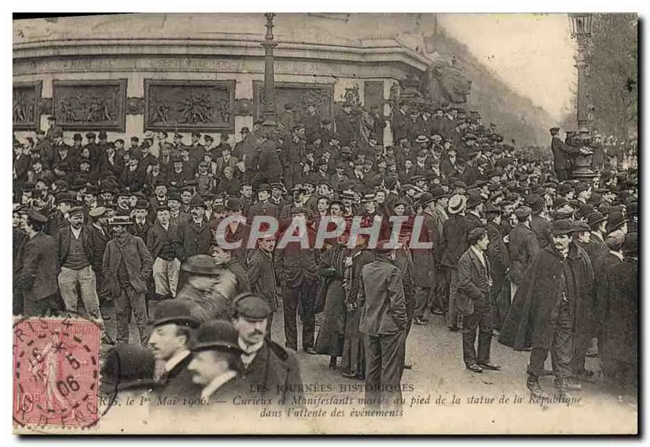 Cartes postales Paris 1er Mai 1906 Curieux et manifestants Statue de la Republique