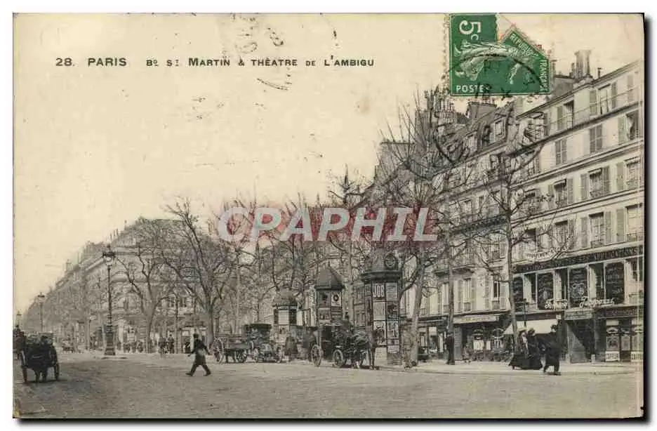 Cartes postales Paris Bd St Martin et Theatre de l'Ambigu