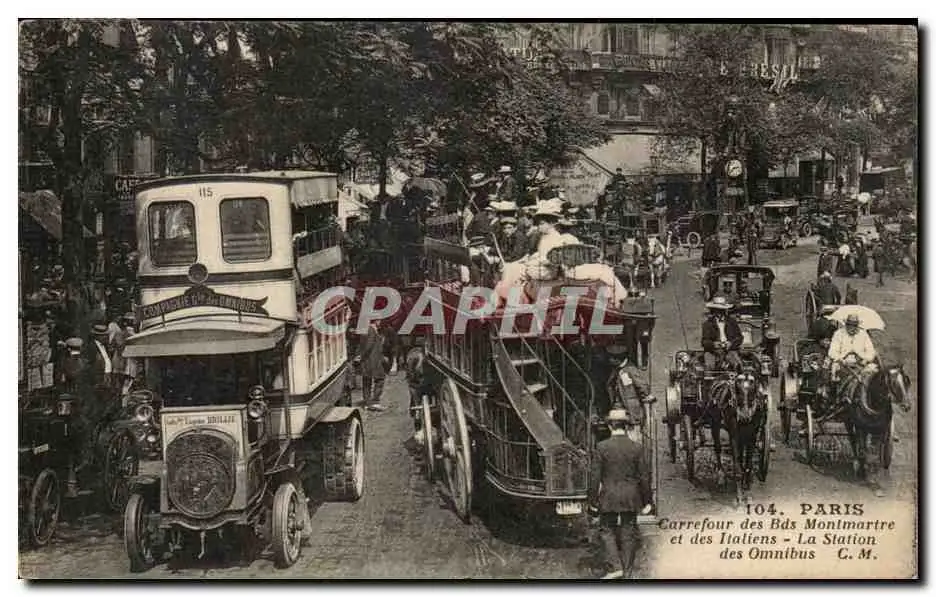 Cartes postales Paris CArrefour des boulevards Montmartre et des Italiens La station des omnibus Imperiale TOP