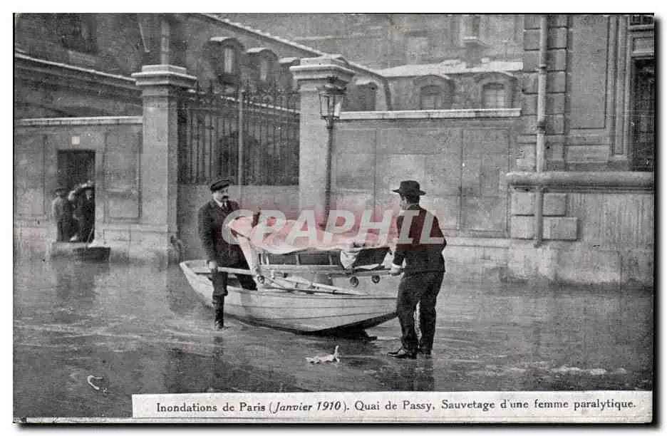 Cartes postales Paris Inondations Janvier 1910 Crues de la Seine Gare Quai de Passy Sauvetage d'une femme par