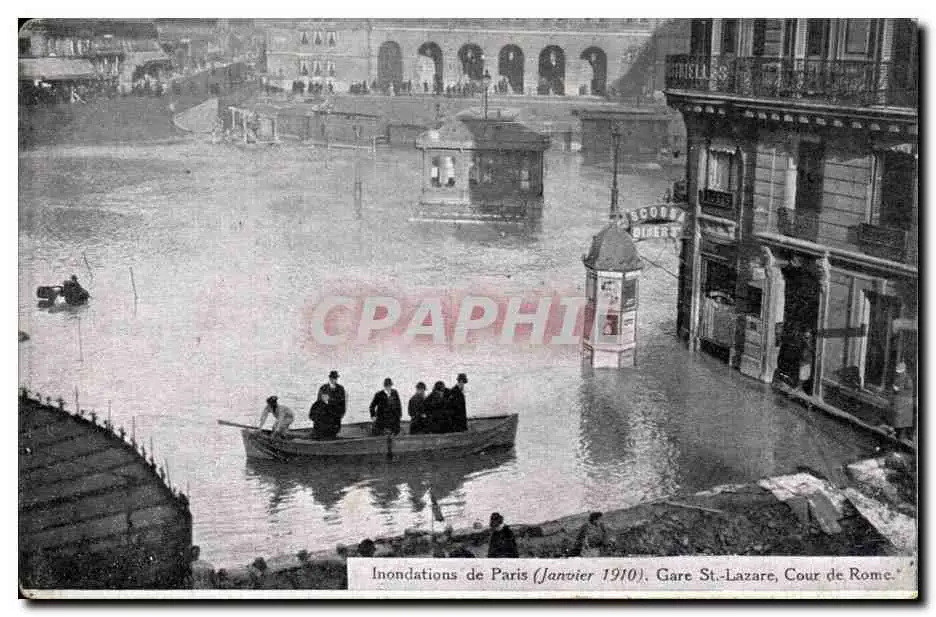 Cartes postales Paris Inondations Janvier 1910 Crues de la Seine Gare Saint Lazare Cour de Rome