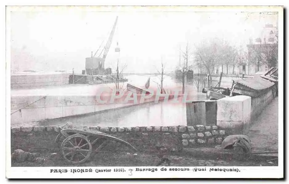 Cartes postales Paris Inonde Barrage de Secours Quai Malaquais