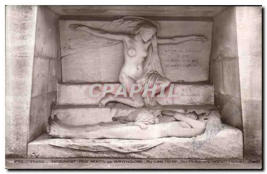 Cartes postales Paris Monument Aux Morts par Bartholome Au Cimetiere Du Pere Lachaise DEDICACEE