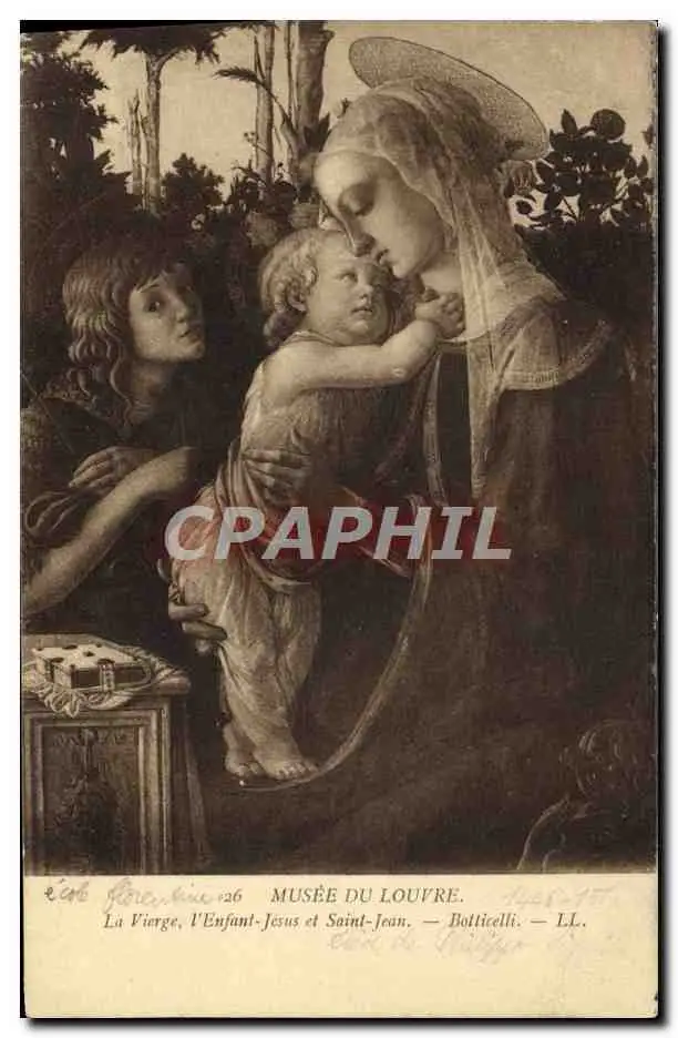 Cartes postales Paris Musee du Louvre La Vierge L&#39enfant Jesus et Saint Jean Botticelli