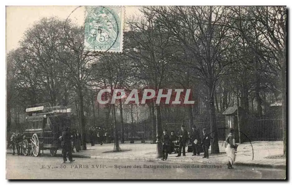 Cartes postales Paris Square des Batignolles station des omnibus