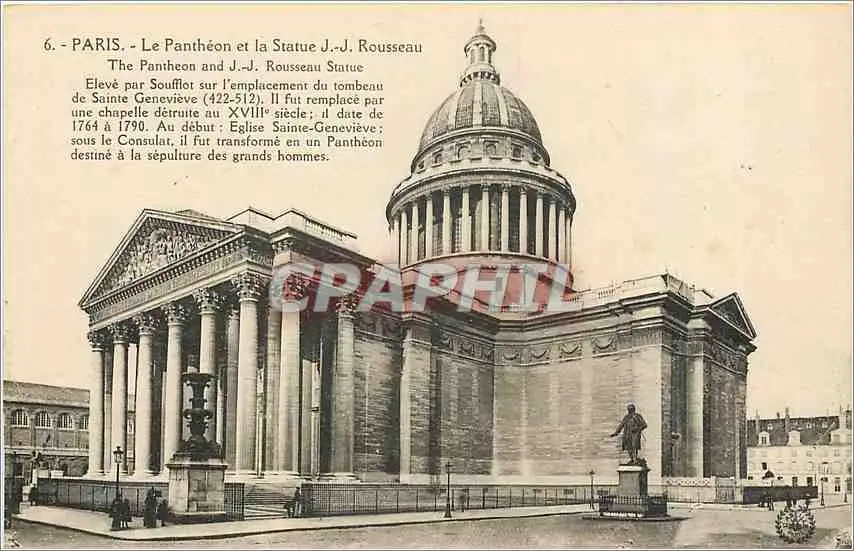 Cartes postales Paris le panthoen et la statue JJ Rousseau