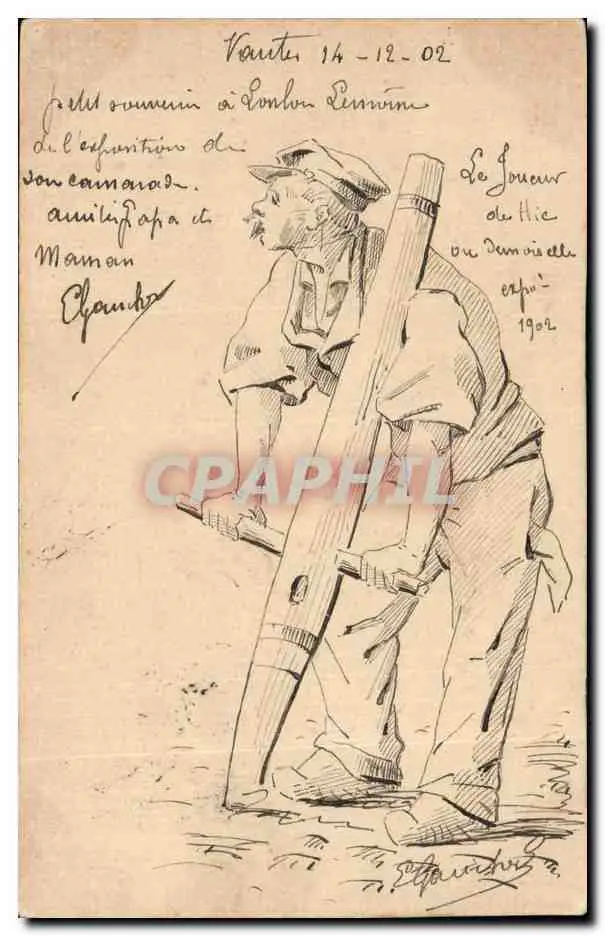 Cartes postales Paysan Le joueur de Hic ou demoiselle expo 1902 a Nantes ( dessin a la main ) Gauchon