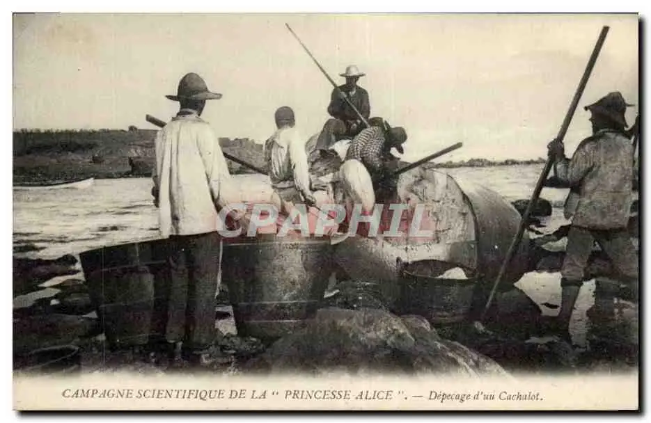 Cartes postales Peche Campagne scientifique de la Princesse Alice Depecage d'un cachelot Polaire TOP