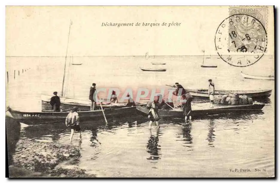 Cartes postales Peche Dechargement de barques de peche